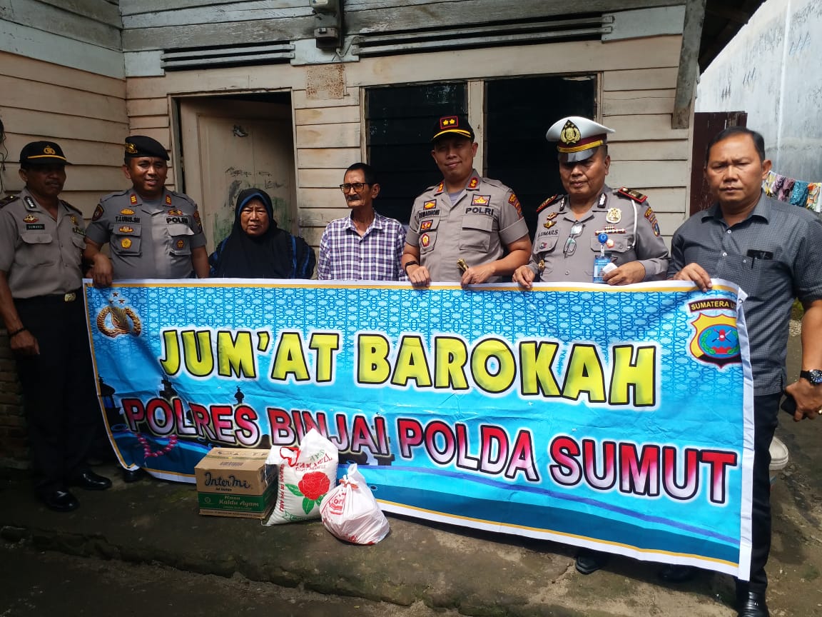 Kasubbag humas polres binjai AKP SISWANTO GINTING mengatakan, kegiatan jumat berokah seperti ini sudah rutin dilaksanakan polres binjai karena sudah menjadi agenda rutin personil polda sumut untuk langsung sambangi warga, kasubbag menambahkan, selain sambangi warga, kegiatan ini sekaligus menjalin silaturahmi dengan warga.