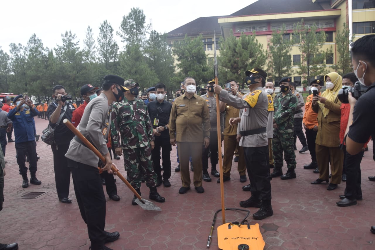Usai menyampaikan amanat itu, Waka Polda Sumut, Brigjen Pol Dadang Hartanto bersama pejabat yang hadir dalam pelaksanaan apel gabungan melakukan pengecekan kesiapan personil dan sejumlat alat dalam mengantisipasi kebakaran hutan.