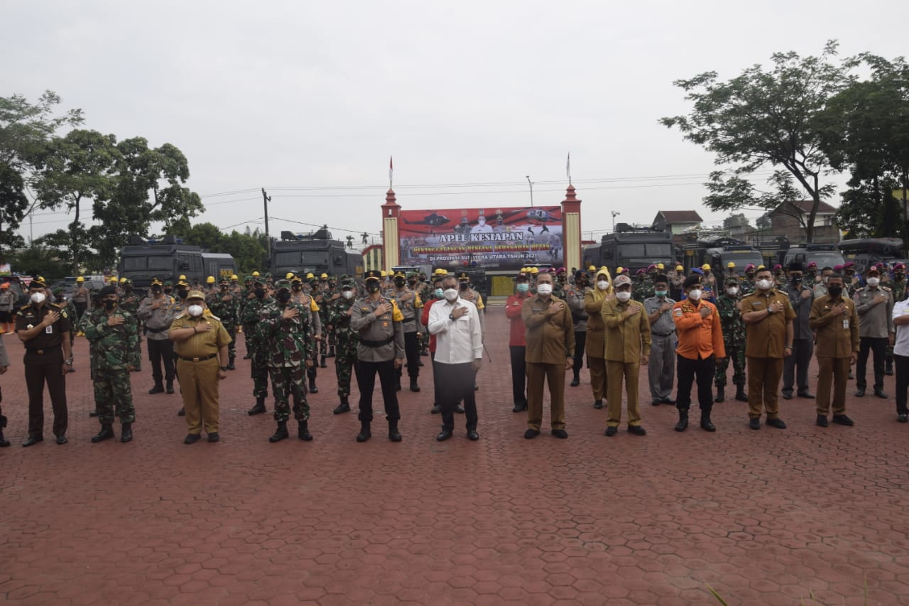MEDAN – Kepolisian Daerah (Polda) Sumatera Utara melaksanakan apel gabungan dalam upaya pencegahan hutan di Sumatera Utara bertempat di Lapangan KS Tubun, Mapoldasu, Selasa (23/3).
