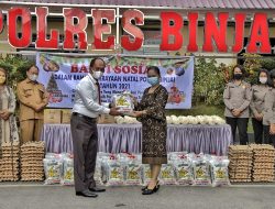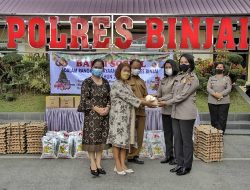 Menjelang perayaan Natal Keluarga Besar Polres Binjai Tahun 2021, Kapolres Binjai AKBP FERIO SANO GINTING, S.I.K,. M.H, melaksanakan Bakti Sosial terhadap Badan Kerjasama Antar Gereja (BKAG) kota Binjai di halaman apel polres Binjai jalan Sultan Hasanuddin No.1 Binjai, Senin,20-12-2021.