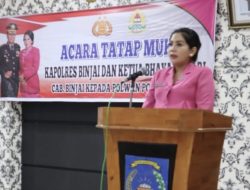 Dalam arahannya Ketua Bhayangkari Cabang Binjai Ny. JUNIKA FERIO SANO GINTING yang juga selaku Ibu Asuh Polwan Polres Binjai menyampaikan bahwa Polwan harus mampu bekerja sama dengan Polki, Polwan harus selalu bisa meningkatkan kemampuan dalam melaksanakan tugas untuk mewujudkan SDM yang unggul, tingkatkan solidaritas sesama polwan untuk saling asah asih asuh melalui gita mentorship, profesionalisme Polwan dalam menjalankan tupoksinya, ikuti ketentuan yang berlaku di organisasi dan masyarakat karena sudah ada aturan yang mengikat. Polwan hendaknya dapat menjadi tauladan bagi organisasi Polri maupun masyarakat, dan juga selalu membina hubungan dan komunikasi serta dapat bersinergi antara Polwan dengan Bhayangkari.