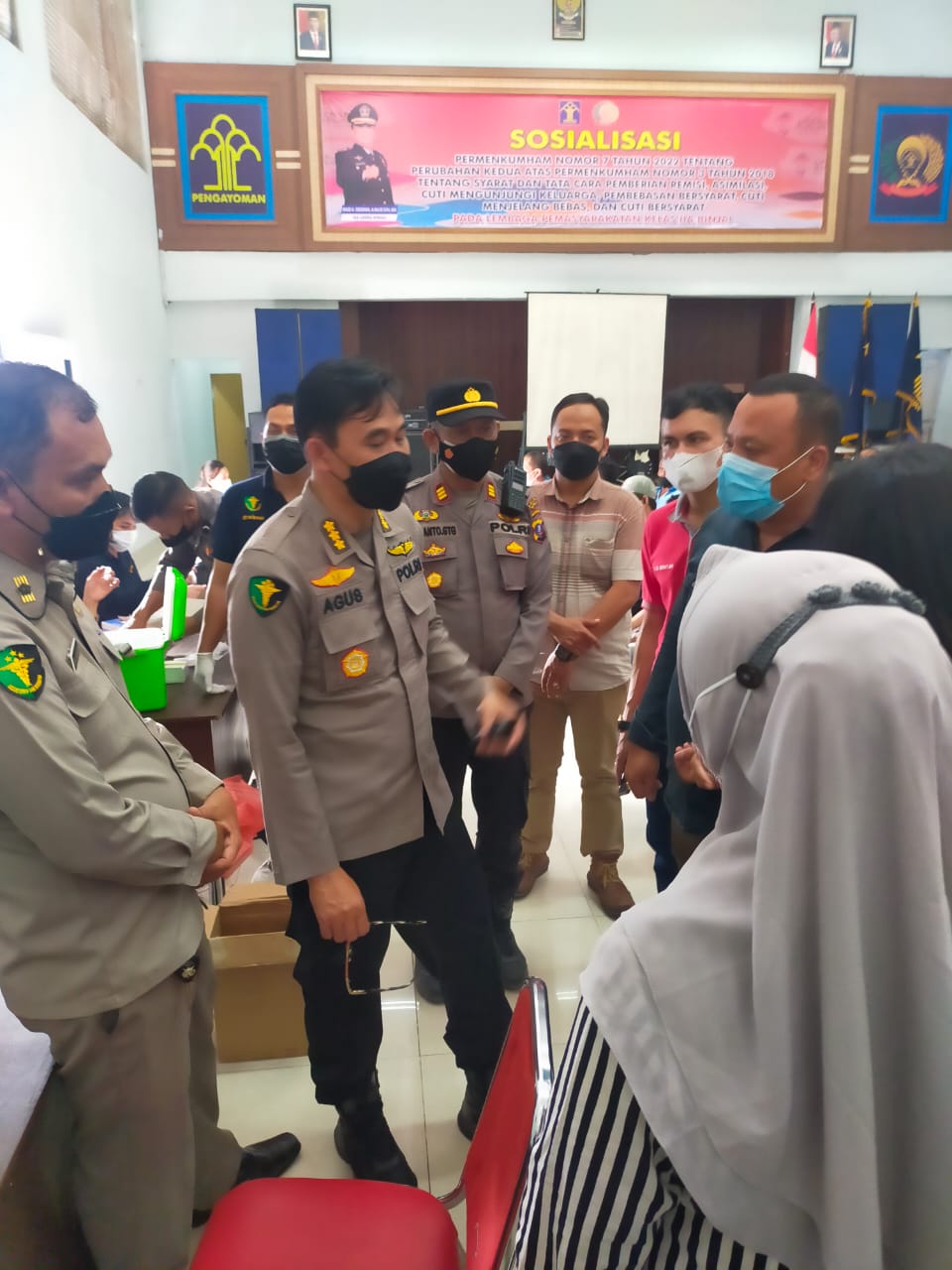 Pelaksanaan Vaksinasi Covid 19 Dosis 1 untuk Narapidana dan Tahanan Lembaga Pemasyarakatan Kelas II A Binjai yang belum mendapat Vaksinasi disebabkan KTP tidak On line / bermasalah bertempat di Aula Lapas Jl. Gatot Subroto Lk IV Kel. Limau Mungkur Kec. Binjai barat, Hari Sabtu tanggal 19/02/2022, Pukul 15.00 wib.