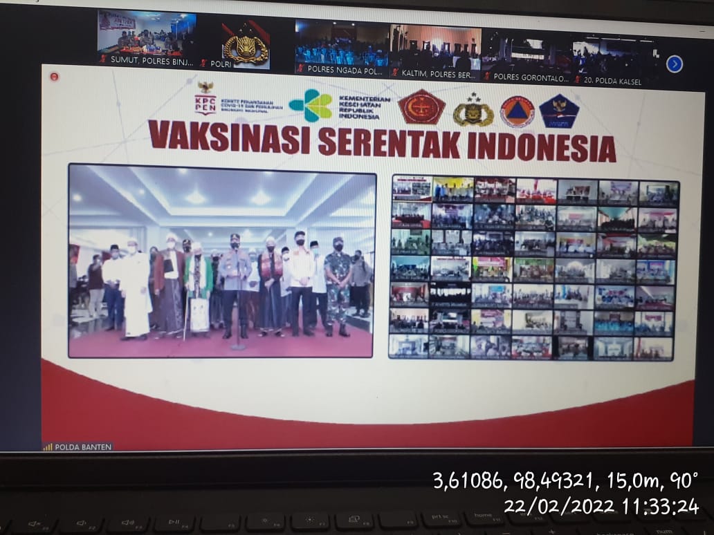 Pada hari ini Selasa tanggal 22 Februari 2022, pukul 11.00 WIB, dilaksanakan kegiatan Vidcon dalam rangka Percepatan vaksinasi covid-19 agar segera terbentuk kekebalan (Herd Imunity) dan dilakukan vaksinasi masal secara serentak diseluruh indonesia yang dipimpin oleh Kapolri JENDERAL POLISI Drs. LISTYO SIGIT PRABOWO Msi.