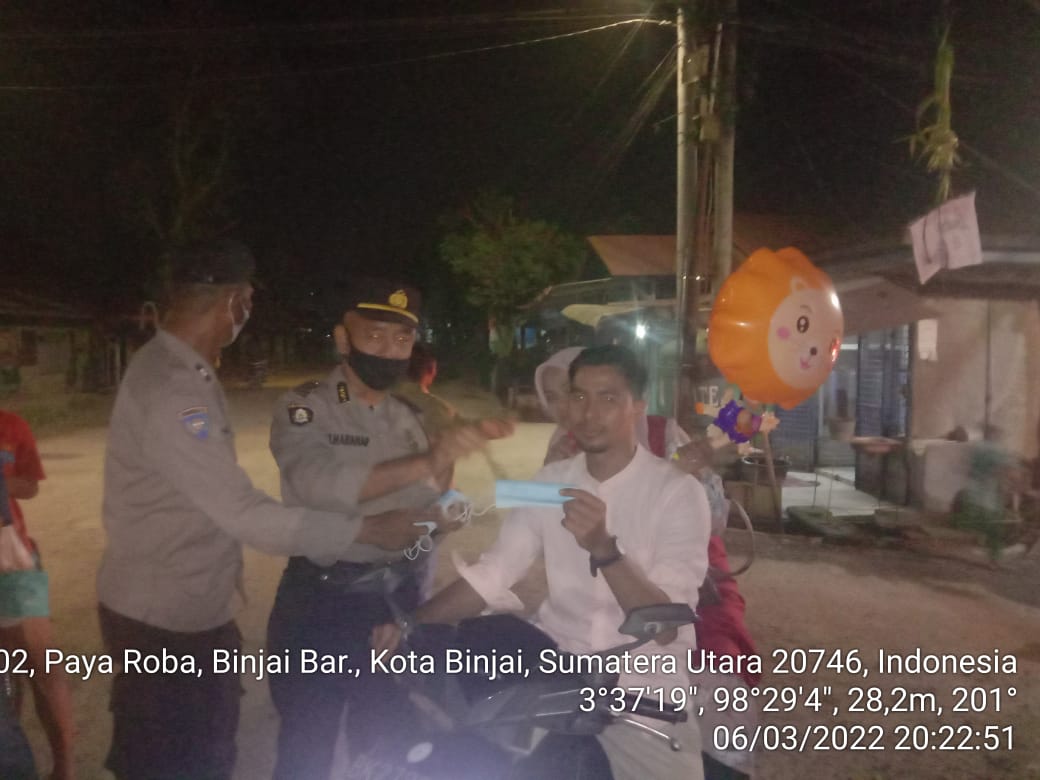 Polsek Binjai Barat,- Pada hari Minggu tanggal 06 Maret 2022 Pukul 20.00 Wib, telah dilaksanakan kegiatan Operasi Yustisi Pendisiplinan Protokoler Kesehatan dan pembagian masker gratis terkait Pencegahan Penyebaran Virus Corona (Covid 19) sekaligus pembagian Masker sebanyak 75 Pcs kepada Masyarakat guna mengantisipasi penyebaran Virus Corona Diesese (Covid 19) bertempat di sekitar wilayah hukum Polsek Binjai Barat.