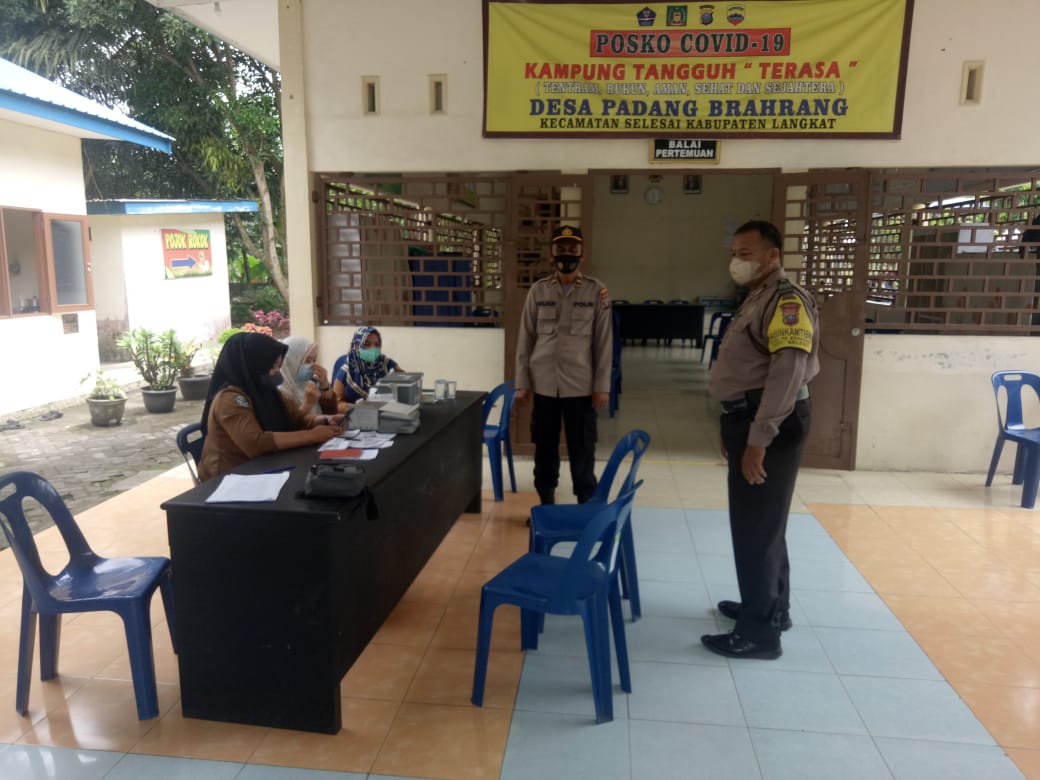 Bhabinkamtibmas lakukan pendampingan untuk Vaksinasi Covid – 19 di Kantor desa Sei Limbat dan kantor desa Padang Brahrang untuk melaksanakan Pengamanan yang bertujuan untuk memberikan rasa aman dan nyaman dan memberikan imbauan Prokes dan 5M bagi peserta Vaksinasi dan untuk mendukung program pemerintah dalam rangka percepatan vaksin bagi masyarakat.