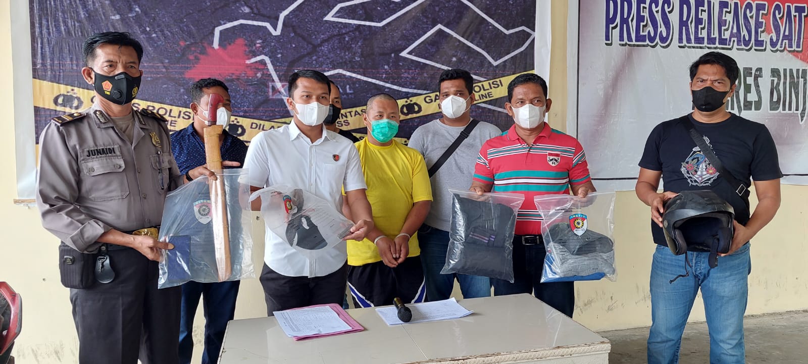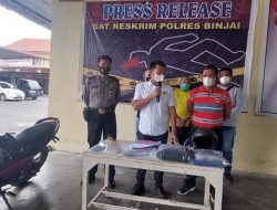 Polres Binjai Melakukan Pres Release kasus tindak pidana pembunuhan berencana atau penganiayaan yang mengakibatkan matinya orang lain sebagaimana dimaksud dalam pasal 340 subs 338 subs 351 ayat (3) KUHPidana, minggu/27/03/2022 sekira pukul 10.00 Wib di mako polres binjai. Press Release ini dipimpin oleh kasat reskrim polres binjai AKP RYAN PERMANA didampingi oleh Kasi Humas Polres Binjai IPTU JUNAIDI dan KBO Sat Reskrim Polres Binjai IPTU GUSLI EFENDI.