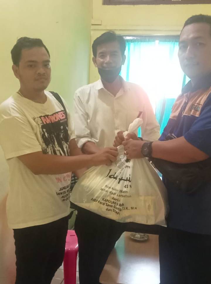 Bingkisan lebaran diserahkan oleh Kapolres Binjai AKBP Ferio Sano Ginting, melalui Kasi Humas Iptu Junaidi, secara simbolis diterima langsung oleh Kordinator Pewarta Polres Binjai, Dedi Anora, Kamis (28/4).