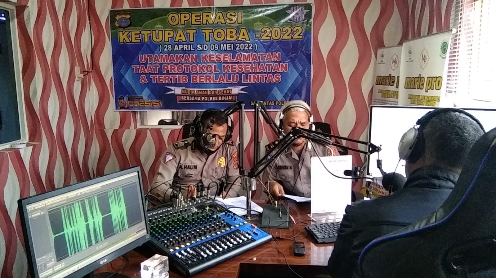 Polres Binjai,-   Personil Sat lantas Polres Binjai dalam Rangka OPS KETUPAT TIBA 2022 Satwil Polres Binjai Melaksanakan Sosialisasi melalui media elektronik radio perkasa, Sabtu 07/05/2022.