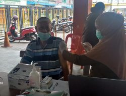 Polsek Binjai Kota,- Personil Polsek Binjai Kota melaksanakan monitoring pemberian suntik vaksin Covid-19 masyarakat umum Khususnya para lansia yang bertempat di Lokasi swalayan asia king Kec. Binjai Kota, Senin 25/07/2022.