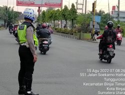 Kota Binjai, – Kapolres Binjai AKBP FERIO SANO GINTING, S.I.K. MH., melalui Kasatlantas AKP Binsar Nabaho Senin (15/08/2022) menyampaikan bahwa kegiatan pengaturan pagi sebagai kewajiban memberikan Pelayanan kepada masyarakat dan merupakan tugas dan tanggung jawabnya sebagai anggota Polri yaitu dengan melaksanakan kegiatan pengaturan lalu lintas demi tercipta arus lalin yang aman, tertib dan lancar.