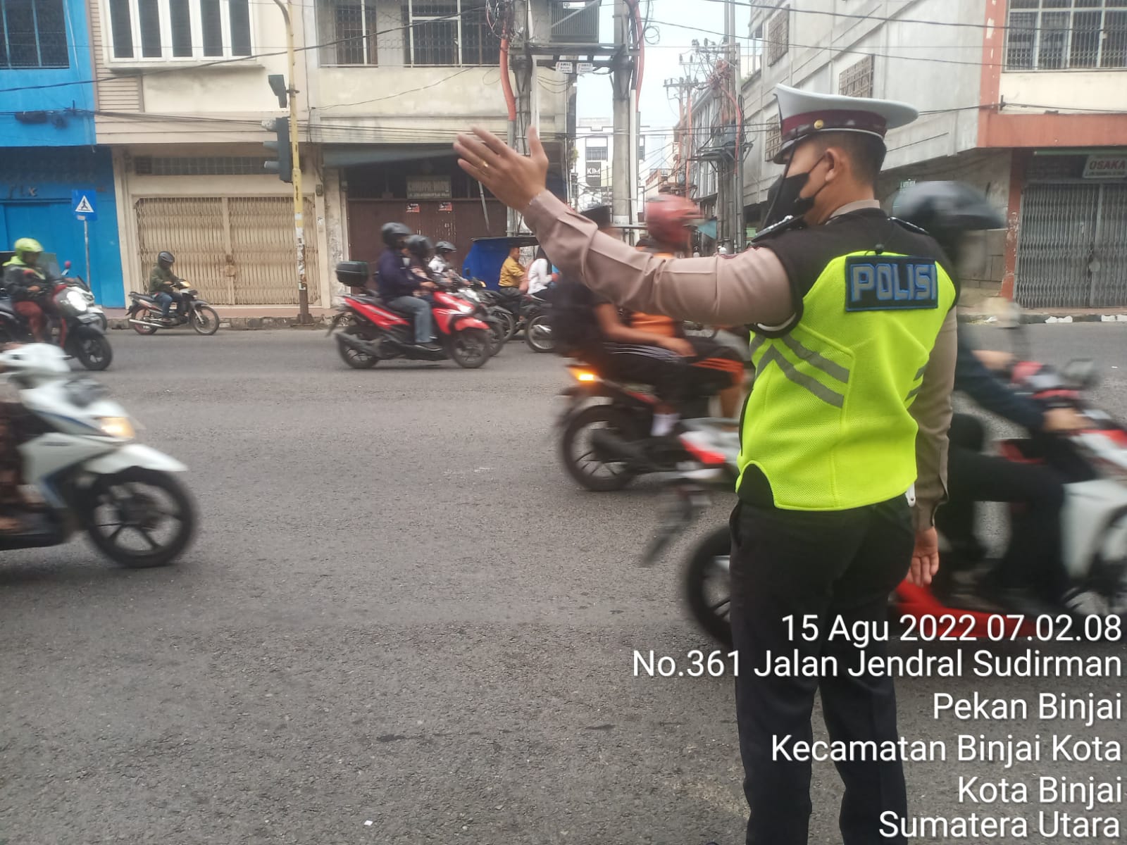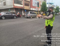 Kota Binjai, – Cegah kemacetan lalulintas, Sat Lantas Polres Binjai mengatur lalulintas pagi bagi pengguna jalan di titik atau simpul jalan dengan tingkat aktivitas masyarakat dan volume kendaraan yang padat seperti di Simpang BCA Jl. Jend. Sudirman, Senin (15/08/2022) pagi. tampak dalam kegiatan pengaturan jalan Brigadir David B.J. Tarigan.