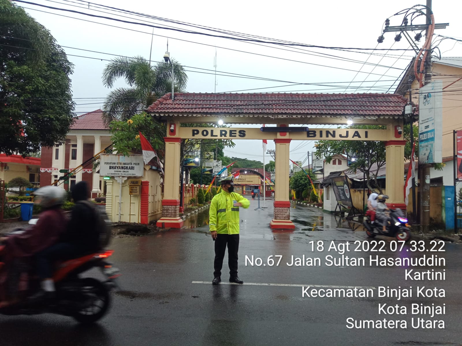 Dari pantauan Humas Polres Binjai sejumlah Polantas, mengatur arus lalu lintas kendaraan di beberapa titik rawan kemacetan yang tersebar di wilayah hukum polres binjai Jl. Sultan Hasanudin Depan Mapolres Binjai, Jl. Sultan Hasanudin Depan SMP 2, Jl. Sultan Hasanudin Depan SMP 7, Jl.Soekarno-Hatta simpang Megawaty, Jl. Jend. Sudirman Depan Methodist, Dengan menggunakan jas hujan, petugas tampak memberikan arahan kepada para pengendara dengan peluit dan ayunan tangannya.