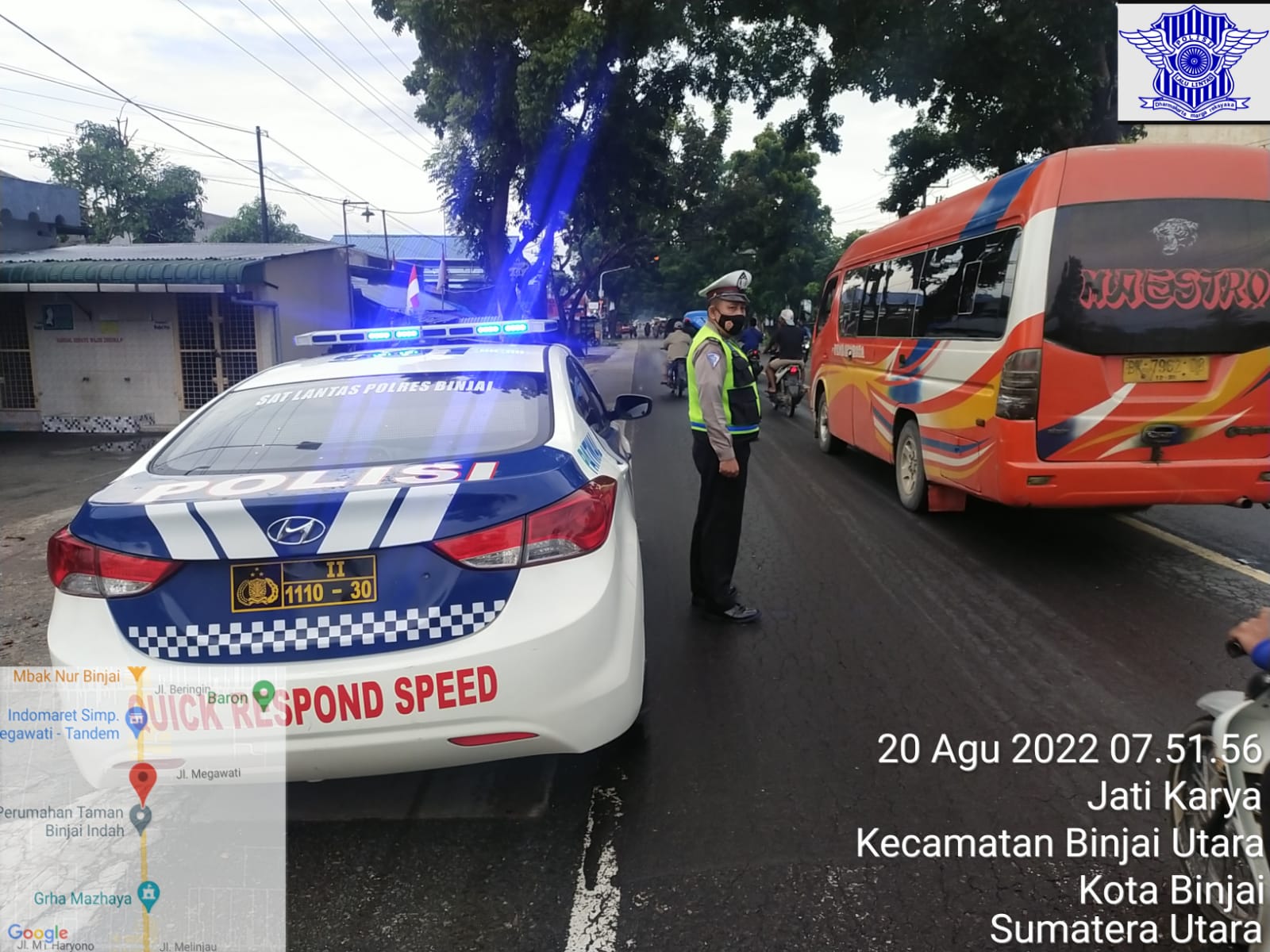 Kegiatan ini dipimpin oleh PS.Kanit Turjagwali Sat Lantas Polres Biinjai AIPTU H.R. ADIOS dan diikuti personel Sat Lantas lainnya. Patroli dimulai dari Simpang Hamparan Perak ( Perbatasan Binjai – Langkat ), Pintu Masuk Tol Binjai Medan, Perbatasan Binjai – Deli Serdang / Simpang Megawati Binjai, hingga Jalan Jend Sudirman Binjai / Inti Kota.