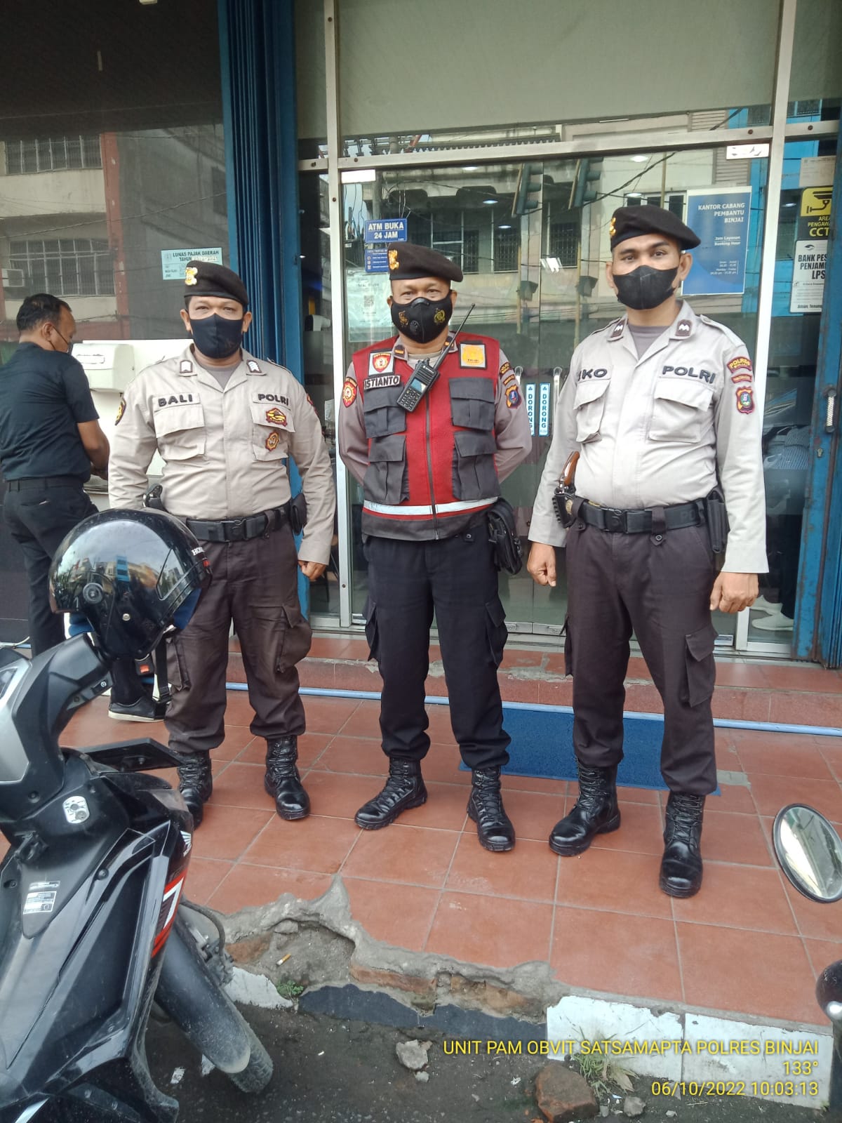 Unit Pam Obvit Sat Samapta Polres Binjai yang melaksanakan pengamanan melekat di bagi sesuai titik- titik Lokasi di bank diantaranya Bank BSI, Bank Sumut Unit Lincun, Bank Danamon, Bank BRI, Bank BCA, Bank Panin, Bank Mestika, Bank BNI Convensional dan Bank Mandiri,  Kamis (06/10).