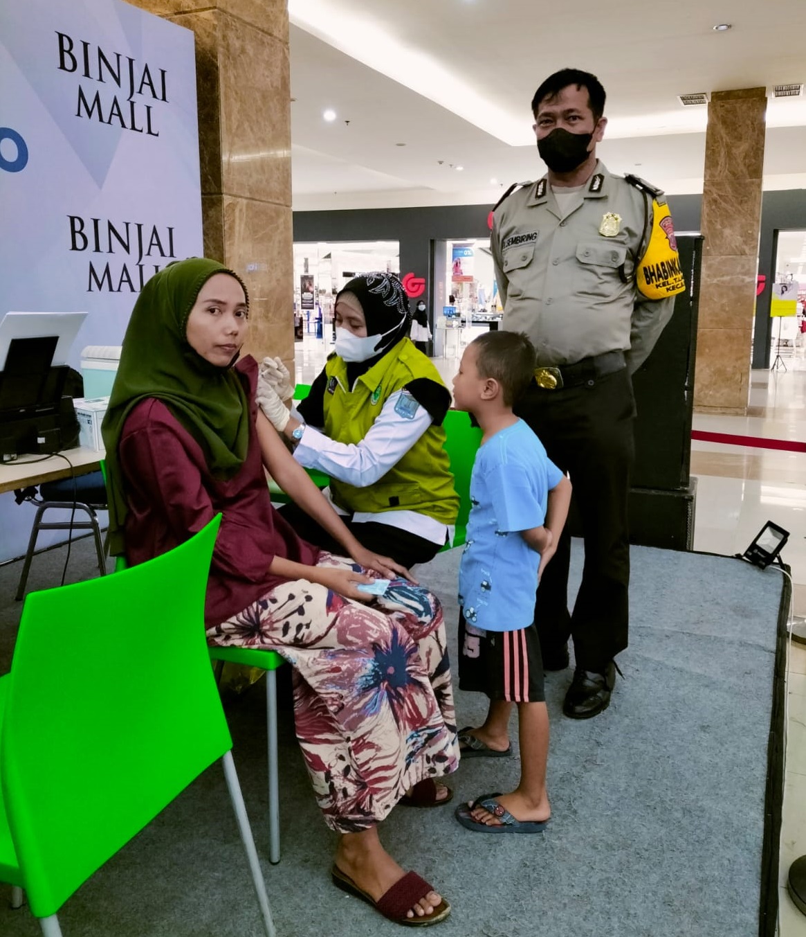 Binjai Timur,- Pelaksanakan Himbauan kepada pengunjung Binjai Super Mall sekaligus mengajak masyarakat untuk melaksanakan Vaksin Dosis 1,2 dan Booster ( dosis 3) yg saat ini di selenggarakan oleh polres Binjai dan Dinas Kesehatan Kota Binjai di Tempat Binjai Super Mall Lt 1 BInjai Super Mall Jalan soekarno hatta binjai, Kamis (13/10).