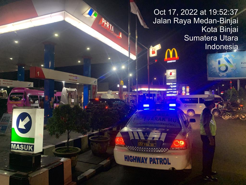Pagi siang maupun malam hari Unit Patroli Sat Lantas monitoring dari satu tempat ke tempat lain salah satunya di SPBU NO.14-207.1163 Jln. Soekarno Hatta Km. 18 Kel. Sumber Karya Kec. Binjai Timur. Patroli dilakukan untuk memantau situasi keamanan di sekitar SPBU terutama setelah resmi adanya penyesuaian tarif BBM subsidi baru oleh pemerintah.
