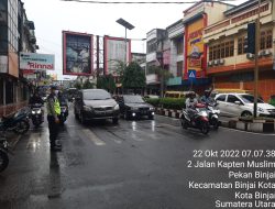 Kota Binjai, – Personil Satuan Lalu Lintas Polres Binjai laksanakan kegiatan pengaturan arus lalu lintas padat pagi demi terciptanya Kamseltibcarlantas di wilayah hukum Polres Binjai yang lancar, Sabtu (22/10) Pagi Pukul 6.30 s/d Selesai.