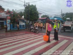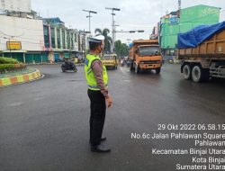 Kota Binjai, – Guna memberikan pelayanan kepada masyarakat di pagi hari, Sat Lantas Polres Binjai, jajaran Polda Sumut, menurunkan personelnya melaksanakan pengaturan lalu lintas di jalan – jalan dalam Kota Binjai, Sabtu 29/10/22