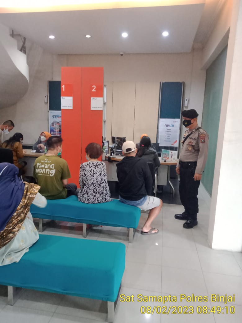 Giat Patroli Sambang Objek Vital yang dilakasanakan Patroli Sambang di Objek Vital, Menyampaikan Pesan Kamtibmas kepada Security / petugas Pengamanan. Memeriksa keadaan CCTV yang ada di Objek Vital. Berkoordinasi dengan Pihak Security mengenai situasi Kamtibmas di Objek Vital. Menghimbau Nasabah agar selalu menerapkan Protokol kesehatan. Menyampaikan kepada nasabah agar waspada setelah bertransaksi di Bank. Monitoring Situasi Kamtibmas di Seputaran Objek Vital. Adapun Objek Vital yang disambangi, Bank Sumut Cabang – Bank Danamon – Bank BRI – Bank BCA – Bank Panin – Bank Mestika – Bank BSI – Bank Mandiri – Pengadilan Negri Binjai – Gudang Dinkes – PTPN II