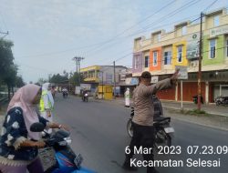 Selesai,- Personil Polsek Selesai jajaran Polres Binjai melaksanakan pengaturan arus lalulintas di ruas jalan rawan gangguan untuk mengamankan dan mengatur arus lalu lintas terutama pagi hari ketika aktifitas masyarakat pengguna jalan mulai meningkat. Senin 06/03/2023.