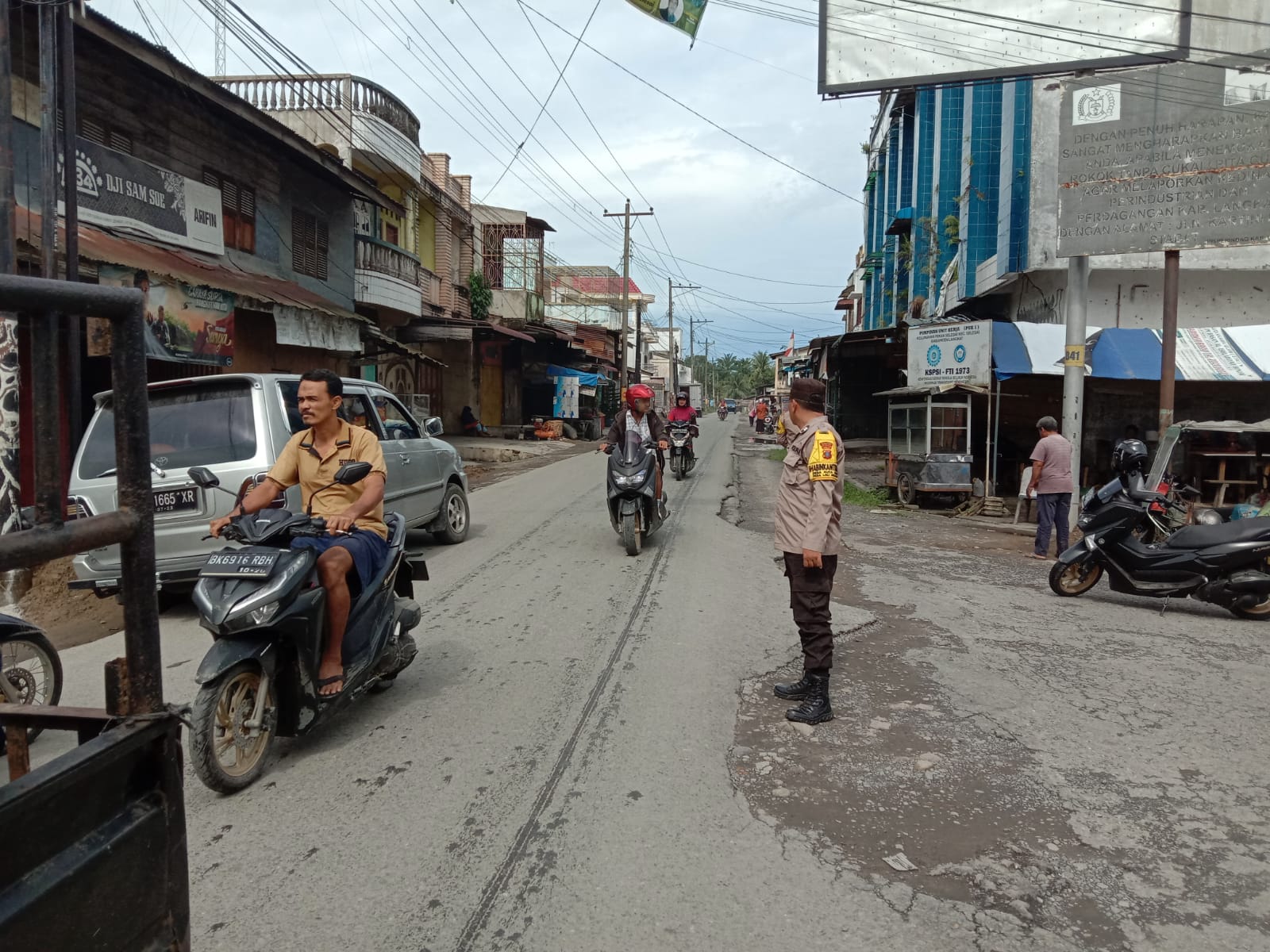 KANIT RESKRIM IPDA S. BATUBARA POLSEK SELESAI BESERTA ANGGOTA MELAKSANAKAN PENGATURAN LALIN
