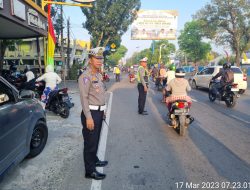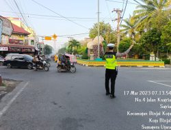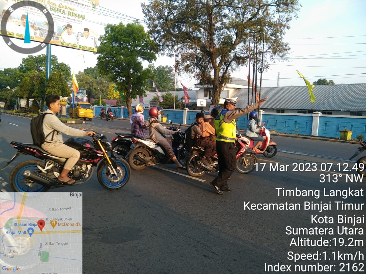 Kota Binjai,- Satuan lalu lintas Polres Binjai Polda Sumut rutin melaksanakan kegiatan Patroli dan Pengaturan Arus Lalu Lintas baik pagi maupun sore harinya yang dilaksanakan di daerah rawan macet lalu lintas khususnya di wilayah hukum Polres Binjai, Jumat (17/03/2023) pagi.