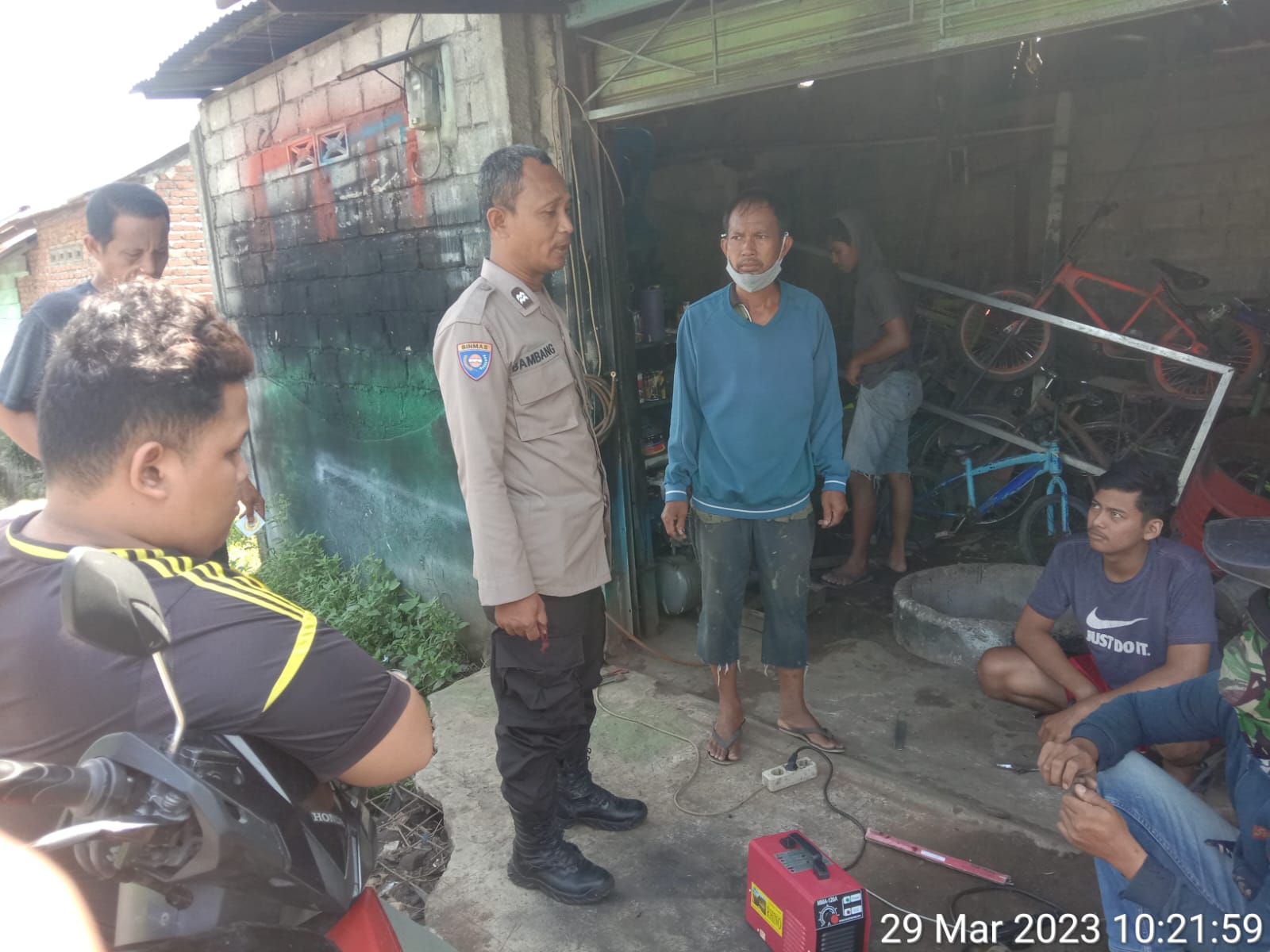 Binjai,- Bhabinkamtibmas Kelurahan Tanah Tinggi AIPTU BAMBANG SUROSO melaksanakan patroli Serta DDS di perbengkelan Las milik Bapak Sukardi, Jl. Ikan Kakap Lingkungan III Kelurahan Tanah tinggi Kecamatan Binjai Timur. Rabu 29 Maret 2023,Pkl. 11.20 wib.