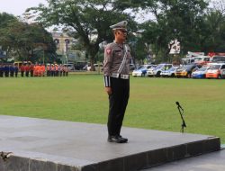 Walikota binjai menyampaikan amanat dari kapolri Jenderal polisi Drs Listyo Sigit Prabowo M.Si yang disaksiakan oleh para peserta apel operasi ketupat toba serta para tamu undangam yang hadir ditribun lapangan merdeka binjai