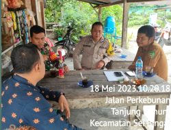 Binjai,- Bhabinkamtibmas Desa Tanjung Gunung Polsek Sei Bingai Aiptu Riston Sembiring bersama Babinsa dan perangkat Desa melaksanakan giat patroli dan sambang ke Dusun II Simpang Tanjung Gunung  Desa Tanjung Gunung Kecamatan Sei Bingai Kabupaten Langkat untuk menyampaikan pesan-pesan kamtibmas kepada warga dan himbauan untuk ikut serta berperan memberantas perjudian atau narkoba dengan cara memberi informasi kepada Kepolisian, Kamis 18 Mei 2023,  pukul 10.30. Wib.