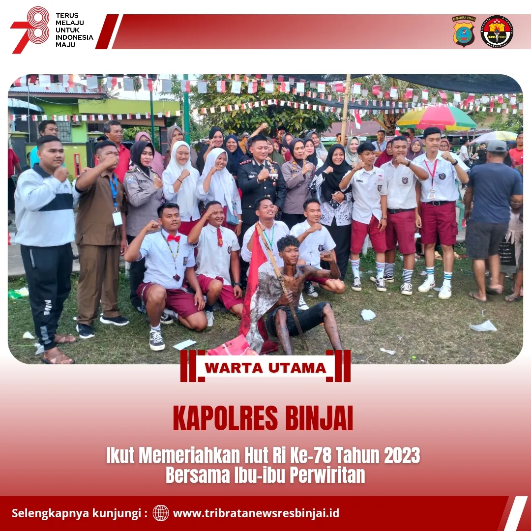 Kapolres Binjai AKBP RIO ALEXANDER PANELEWEN, S.I.K., bersama kasat binmas AKP ARNAWATI, SH, MH, melaksanakan silaturahmi bersama ibu-ibu perwiritan dan sekaligus dalam rangka memeriahkan HUT RI ke-78 tahun 2023 di halaman mesjid al-Ikhlas jalan kwala madu dusun-I desa tandem hilir-I kecamatan hamparan perak kabupaten deli serdang, provinsi sumatera utara, Kamis 17/8/2023