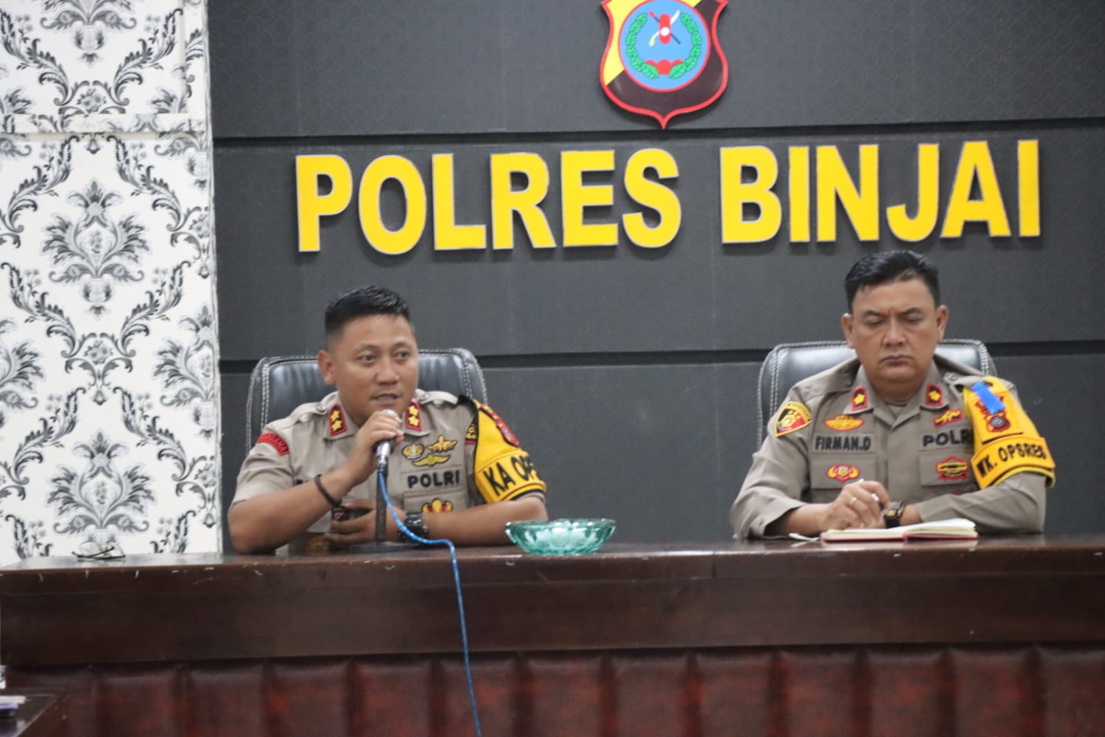 Kota Binjai,- Kapolres Binjai AKBP RIO ALEXANDER PANELEWEN, S.I.K., bersama Waka polres KOMPOL RD. FIRMAN D., SH, M.H., memberikan arahan kepada para personil di aula catur sakti polres binjai jalan sultan hasanuddin No.1 Binjai, provinsi sumatera utara, (Rabu 14/9/2023)