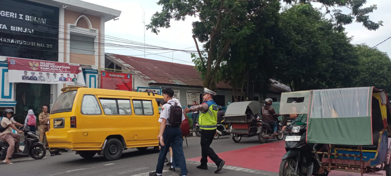 Binjai, – Personil Satlantas Polres Binjai hadir ditengah-tengah masyarakat dalam rangka gatur pagi memberikan pelayanan yang terbaik kepada masyarakat, pelayanan humanis dangan melakukan pengaturan lalu lintas di berbagai jalan-jalan yang rawan kemacetan tepatnya di seputaran Wilayah hukum Polres Binjai, Senin (6/11), Pagi.