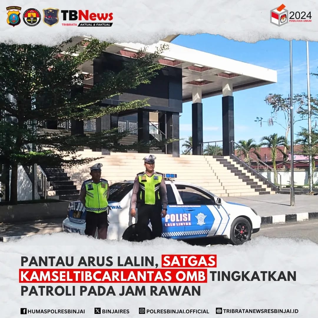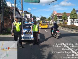 BINJAI, Polda Sumut – PolresBinjai, Satuan Tugas (Satgas) Keamanan, Keselamatan, Ketertiban dan Kelancaran Lalu Lintas (Kamseltibcarlantas) Operasi Mantap Brata Toba 2023-2024 Polres Binjai melaksanakan patroli dan pengaturan lalu lintas di beberapa titik strategis di Kota Binjai, Sumatera Utara. Sabtu, (16/12/2023).