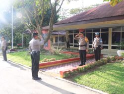 Tampak hadir dalama pelaksanaan upacara Para Kabag, Kasat, Kasi, Kapolsek, Perwira, Bintara serta ASN jajaran Polres Binjai.