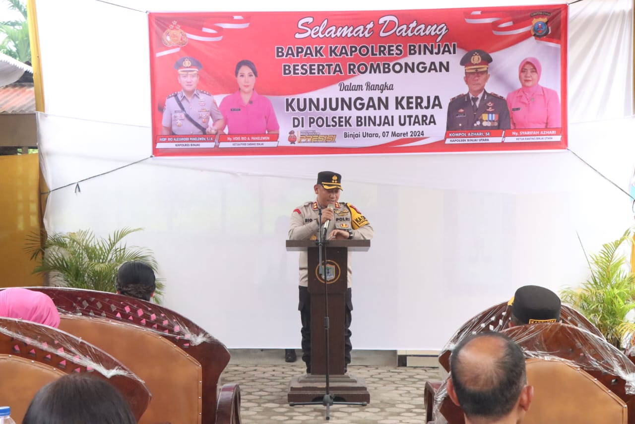 Yang mana kapolres Binjai Akbp Rio Alexander Panelewen bersama ibu ketua Bhayangkari cabang Binjai Ny Vois Alexander Panelewen bersama para pejabat utama polres binjai dan pengurus bhayangkari melaksanakan kunjungan pertama ke polsek Binjai utara pada selasa (07/03/24) pukul 09.00 WIB