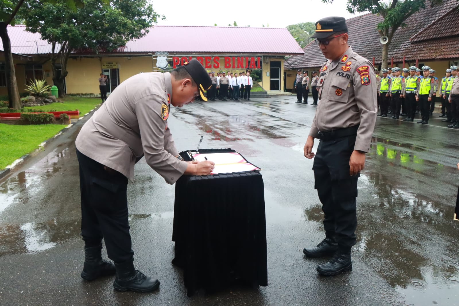 Kegiatan upacara penyambutan para siswa SPN Hinai Polda Sumut di polres Binjai dihadiri oleh Waka polres Kompol RD. Firman D., SH, MH, Kabag Ops Kompol Polin Benhod Damanik, SH, Kabag SDM Akbp (Abdi) Erlonggena Sembiring, Kabagren Kompol Misrianto, S.Sos, MH, para kasat, para kapolsek sejajaran dan personil polres Binjai serta pendamping gadik dari SPN Hinai Polda Sumut.