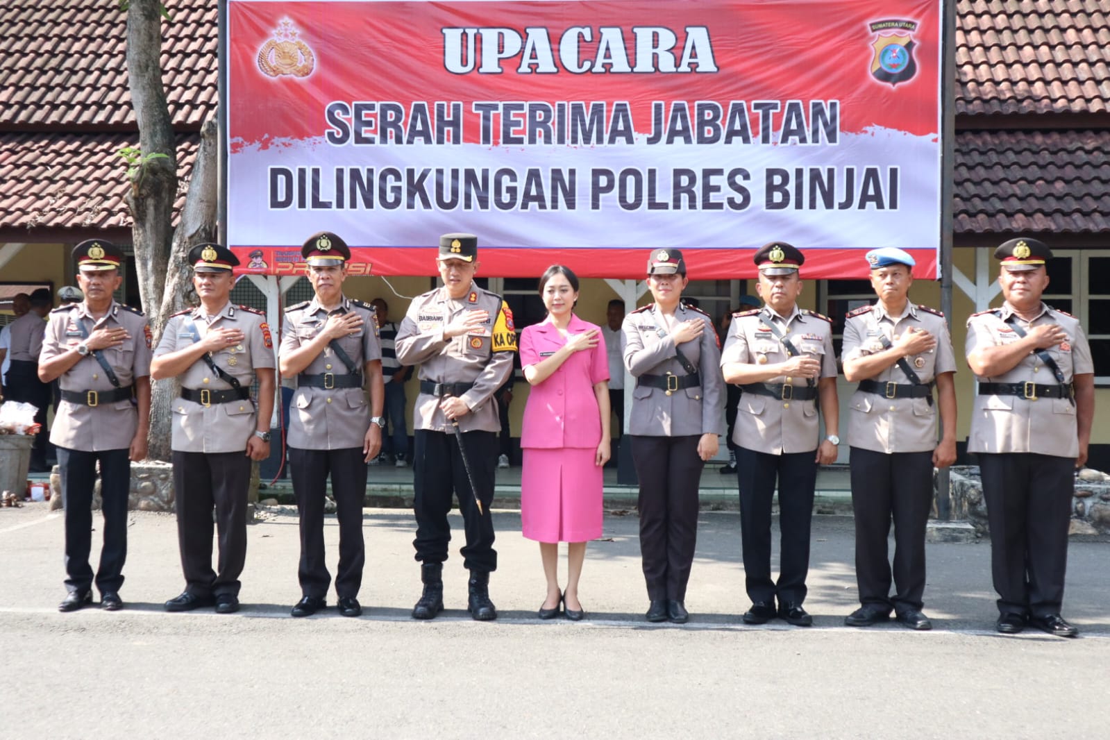 Kepada pejabat baru mengucapkan selamat datang dan segera untuk menyesuaikan diri dengan lingkungan tempat tugasnya, dengan berbekal pengalaman tugas selama ini, dan juga Kapolres Binjai memberikan beberapa penekanan al ;