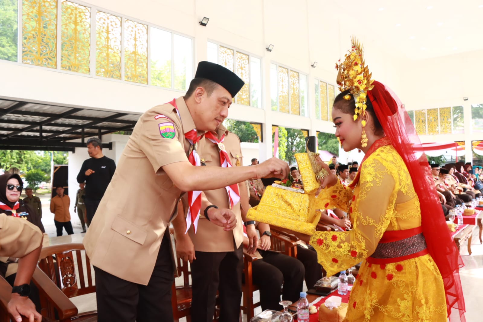 BINJAI | Kepala Kepolisian Resor Binjai AKBP Bambang C. Utomo, SH.,SIK.,M.Si Bersama Forkopimda Kota Binjai Menghadiri Pelantikan dan Pengukuhan Majelis Pembimbing, Kwartir Cabang dan Lembaga Pemeriksa Keuangan Kwartir Cabang Gerakan Pramuka Kota Binjai Masa Bakti 2023-2028, Bertempat di Pendopo Umar Baki dan Lapangan Merdeka, Jl. Veteran Kel. Tangsi Kec. Binjai Kota, Kota Binjai. Sabtu 20/7/24 Pkl. 09.00 WIB