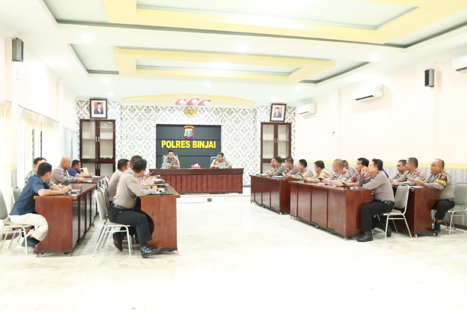BINJAI,- Kapolres Binjai Akbp Bambang C. Utomo, S.H.,S.I.K., M.Si, memimpin rapat dalam rangka pengamanan menjelang kegiatan pekan olah raga nasional (PON) ke XXI dan pelaksanaan Pilkada serentak tahun 2024, di wilayah hukum polres Binjai,