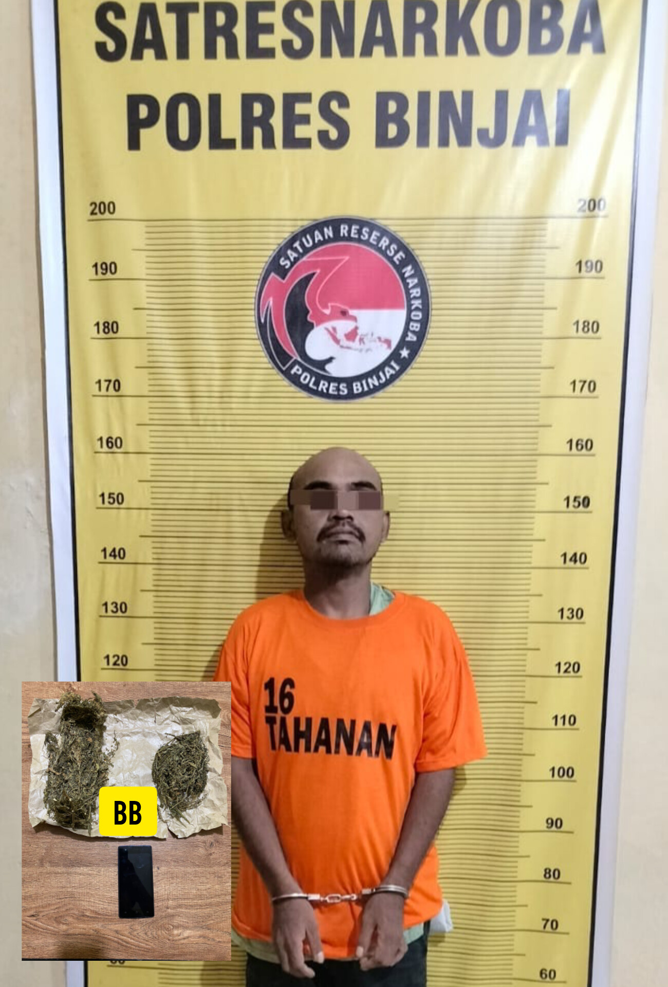 BINJAI /-Seorang residivis dengan inisial BG (40) di tangkap satuan reserse narkoba polres Binjai, saat kedapatan membawa daun ganja kering, di jalan Hoki kelurahan timbang langkat kecamatan Binjai Timur, provinsi sumatera utara, Senin (12/8/24) pukul 17.00 wib sore hari.