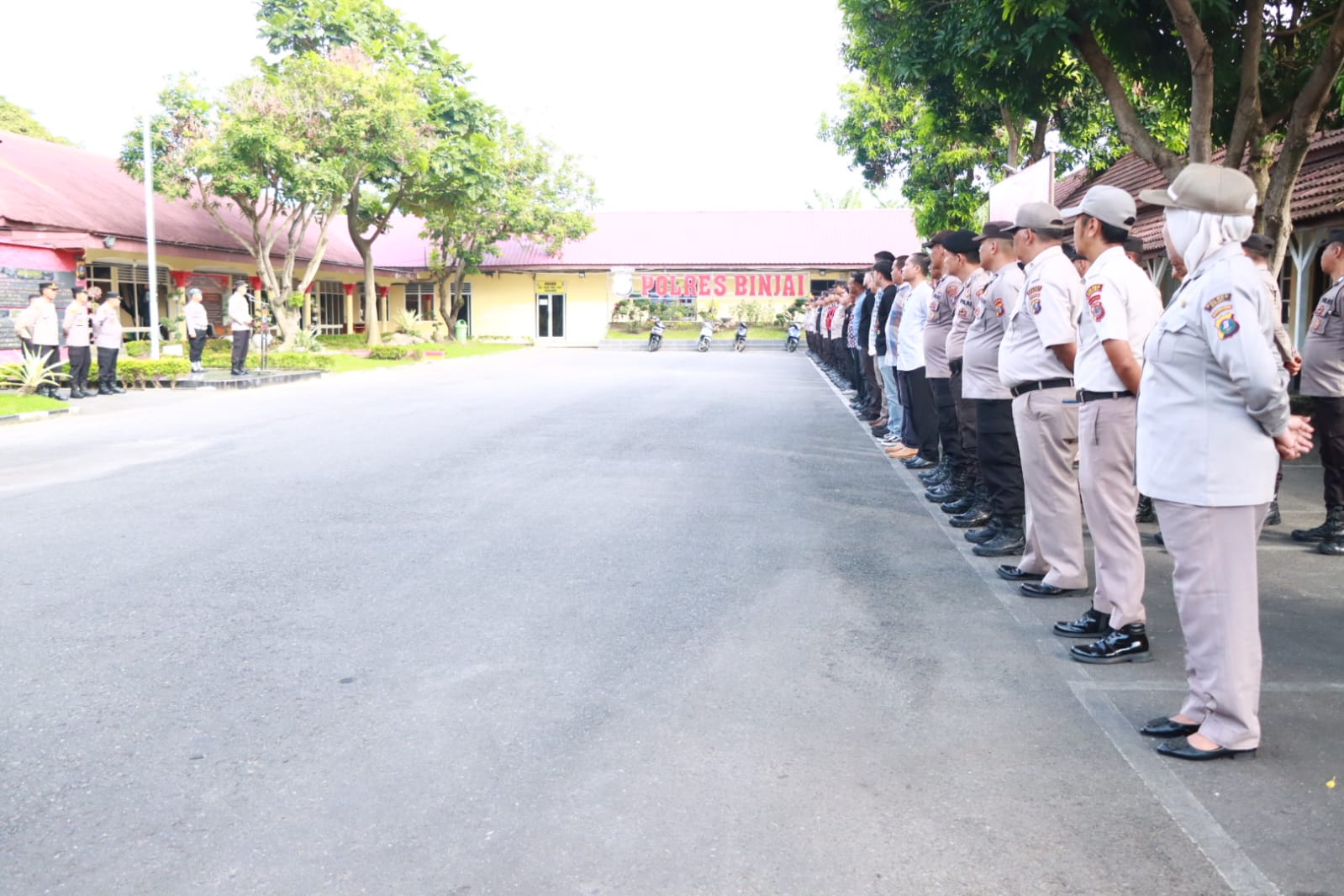 Kapolres Binjai juga mengingatkan personil untuk tetap jaga kekompakan dan kebersamaan sesama personil serta jalin sinergitas TNI-Polri mapun instansi terkait lainnya untuk mewujudkan kota Binjai tetap kondusif. tegas Akbp Bambang.