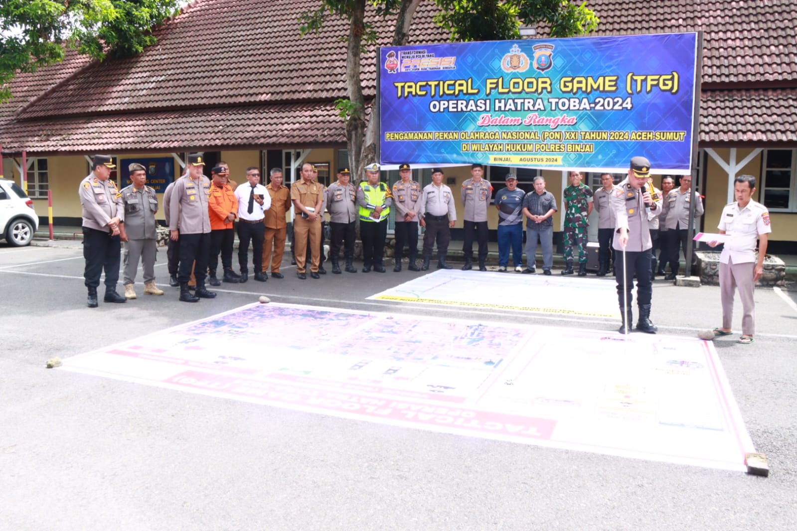 BINJAI /-Dalam rangka menghadapi pelaksanaan pengamanan kegiatan PON XXI Tahun 2024 Aceh-Sumat, Polres Binjai melaksanakan latihan Tactical Floor Game (TFG) Operasi Hatra Toba 2024.