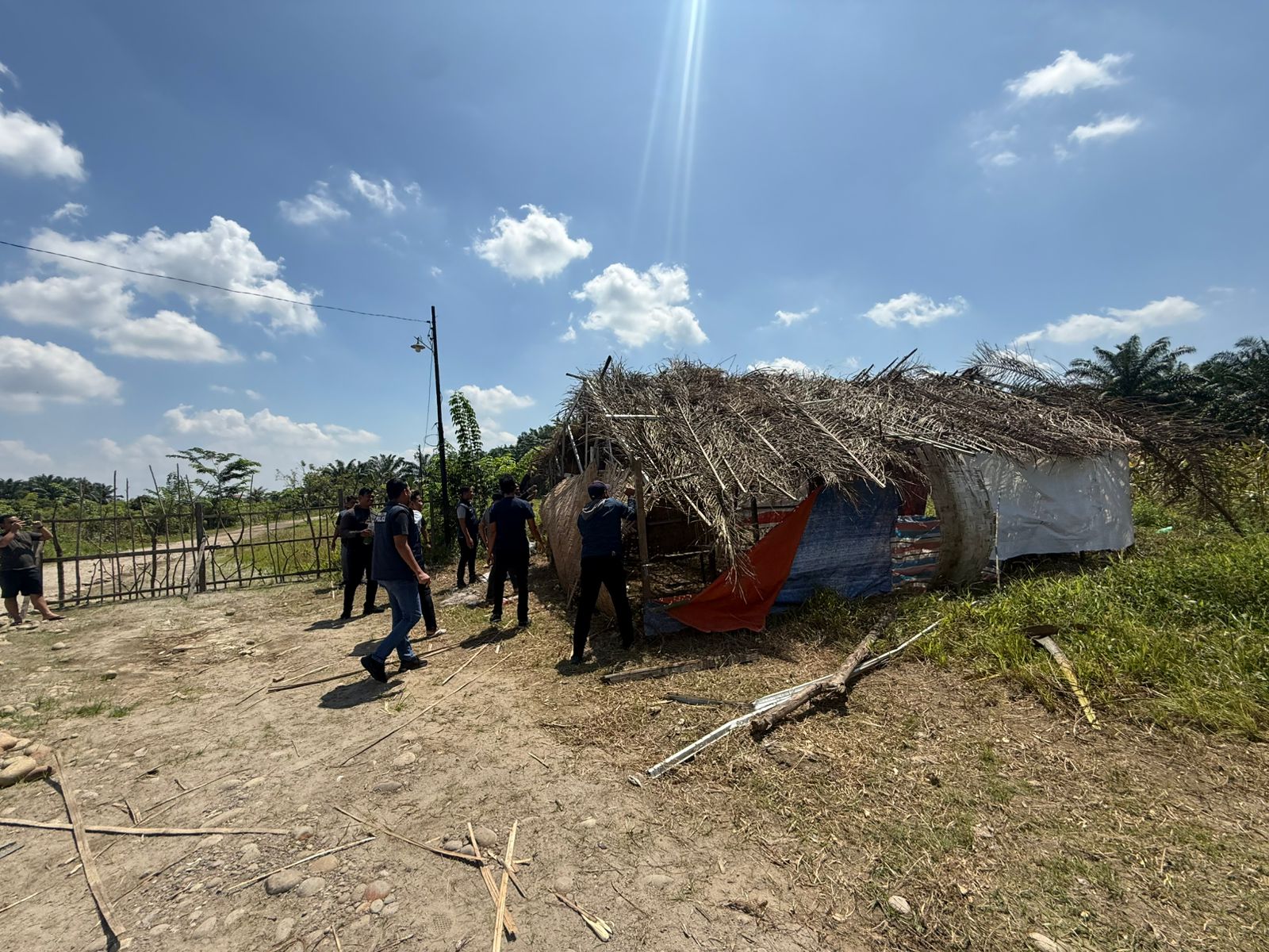 Pada saat dilakukan penggerebekan tidak ditemukan adanya penghuni, barak dalam keadaan kosong, namun ditemukan barang bukti berupa :