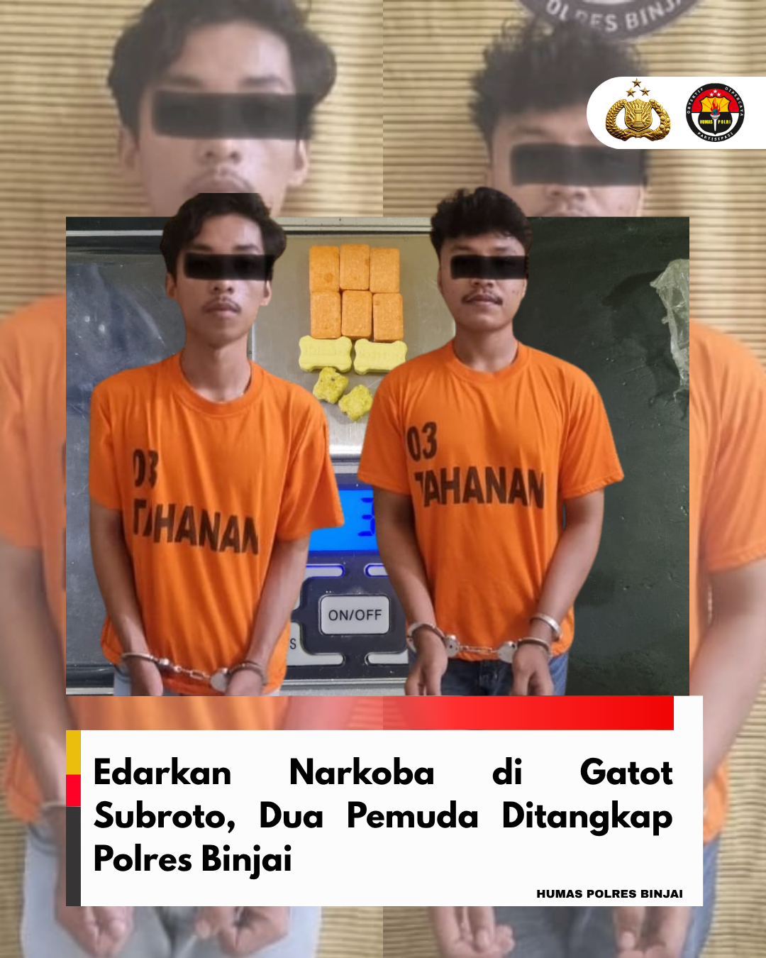 BINJAI /- Satres narkoba polres Binjai kembali menggagalkan peredaran narkoba jenis ekstasi serta melakukan penangkapan terhadap 2 (dua) laki-laki inisial ESS (23) dan BJG (23), di TKP jalan Jenderal Gatot Subroto, Gg Apel Kelurahan Suka Ramai, Kecamatan Binjai Barat, Kota Binjai., Palembang Kelurahan Rambung Timur Kecamatan Binjai Selatan, kota Binjai., Sabtu (25/10/25) pukul 19.30 wib.