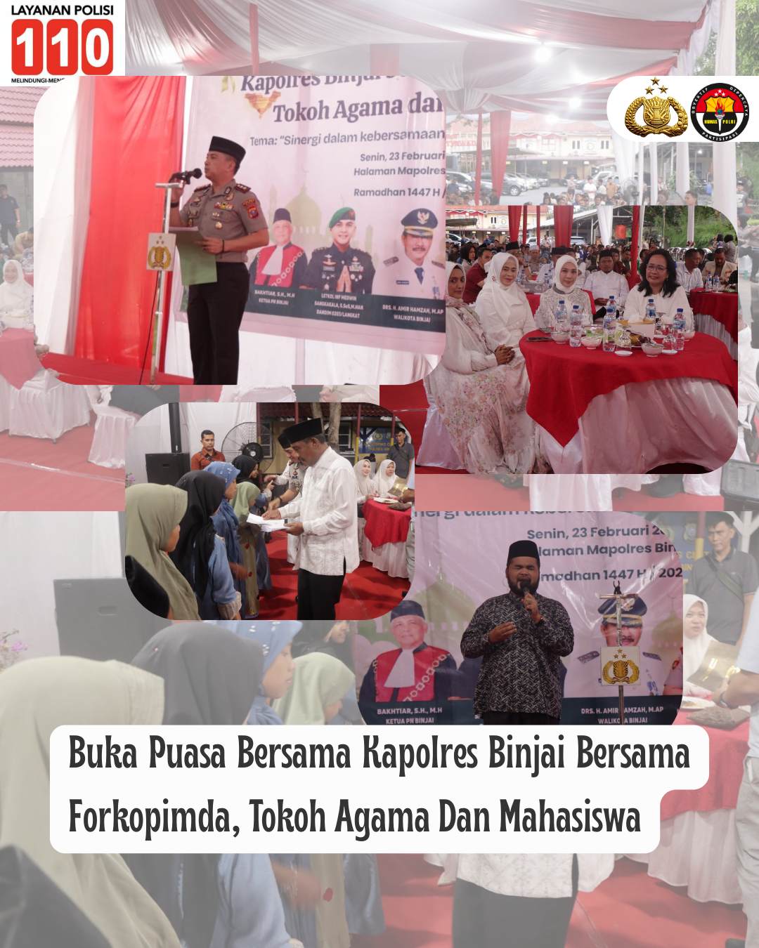 BINJAI / – Menyambut bulan Suci Ramadhan 1447 Hijriah, Kapolres Binjai AKBP Mirzal Maulana, S.I.K., S.H., M.M., M.H., melaksanakan kegiatan Buka Puasa Bersama Forkopimda, Tokoh Agama dan Mahasiswa, di halaman Polres Binjai, jalan Sultan Hasanuddin No.1 Binjai., Senin (23/2/26).